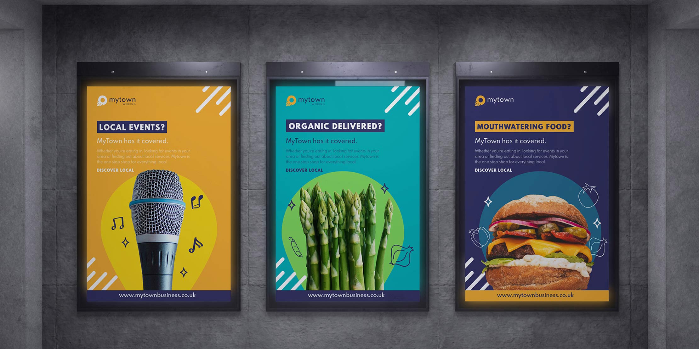 Launched initially in the towns of Woking and Richmond in Surrey, the new initiative from the MyTown brand required a full set of creatives including a new logo, colour palette, brand guidelines and a social media creative pack of assets that could be used across advertising platforms.